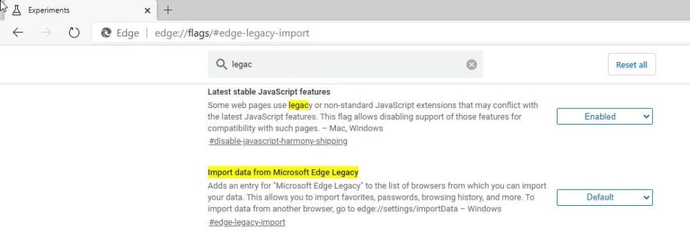在最新发布的Microsoft Edge Canary v83.0.473.0版本更新中,用户可以你可以前往 "edge://flags/#edge-legacy-import",在下拉菜单中选择 "启用"。