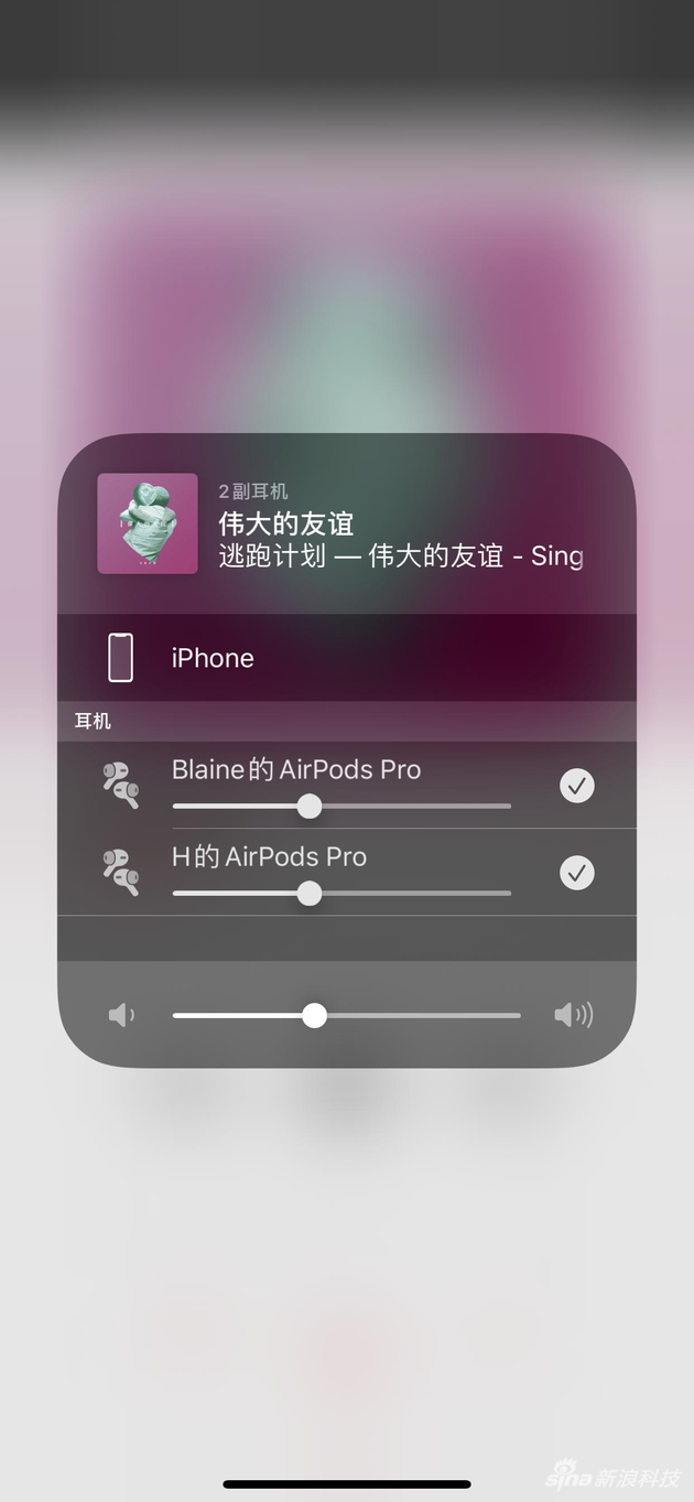 控制中心可切换蓝牙连接,两个AirPods还能共享音乐