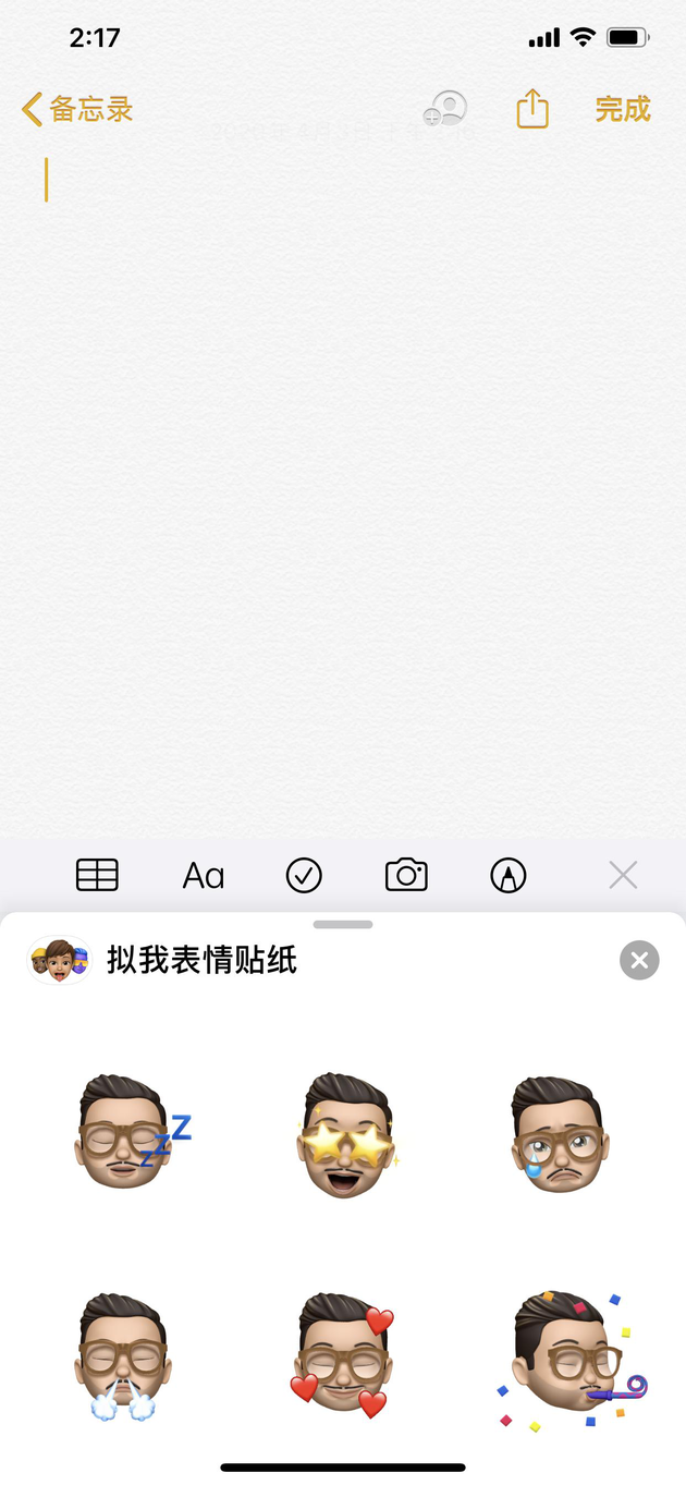 打开备忘录选择拟我表情,并存储图像