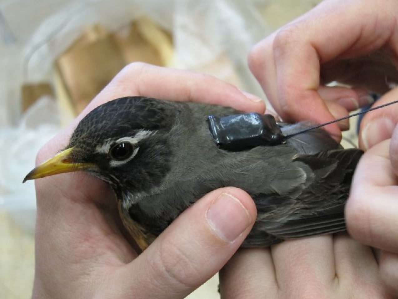 科学家们在美洲知更鸟身上安装了小型GPS背包以了解它们的迁徙模式
