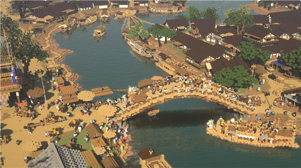 在作者张择端精湛的绘画技艺之下,画中内容不仅人物形象特征明确,而且房屋、桥梁、城楼等建筑极具宋代特色,受到了许多建筑爱好者的喜爱。而近期,开发者团队“国家建筑师Cthuwork”便成功将《清明上河图》中的场景还原至《我的世界》之中,现已在【国建cthuwork】服务器展览大厅展出,供游客免费游览,并已免费上架在《我的世界》PE版【资源中心】-【国建-《清明上河图》】专题。