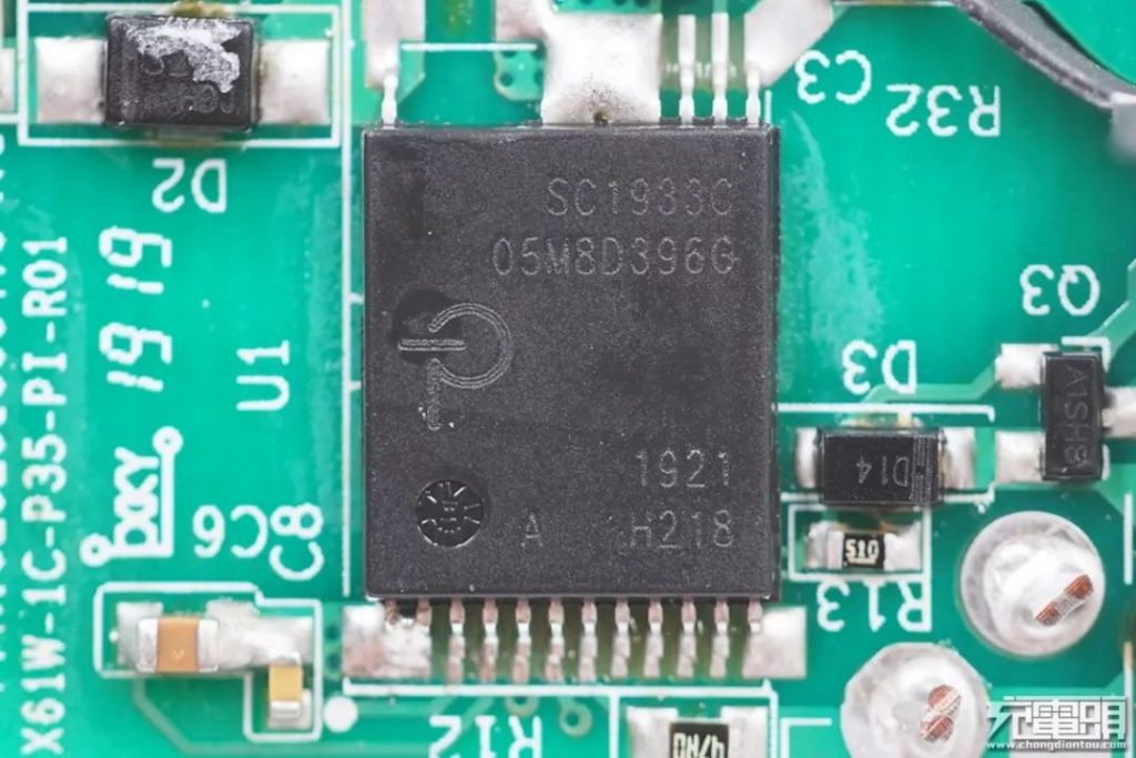 充电头网拆解了解到,充电器内部电路设计非常简洁,这也得益于采用了PI PowiGaN控制芯片,集成PWM控制器、氮化镓功率MOS、次级同步整流控制器等,并且省略了常见的光耦反馈元件。次级侧采用恒泰科低压MOS同步整流,协议识别则选用了伟诠WT6636F。