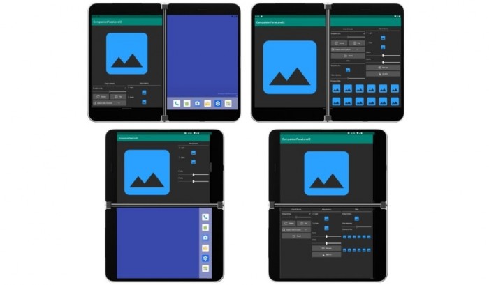 如图所示,Surface Duo支持单屏、双屏显示同一APP,而且支持横屏、竖屏显示同一APP,这样的优势在于APP功能全部呈现,不需要滑动操作。