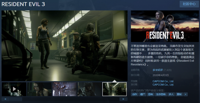 而附赠的多人PVP游戏《生化危机:抵抗》并没有像卡普空预期的那样,拔高游戏的整体价值和延长玩家们的游玩时间。毕竟大部分玩家仍然是冲着《生化危机3:重制版》购买的游戏,如果国区414元的售价和6小时的流程不能尽快改善,恐怕这款游戏未来的评价还会跌到更惨。