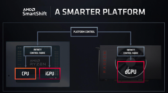 从索尼的介绍来看,PS5的动态频率技术主要是基于AMD的SmartShift,这是锐龙4000处理器使用的技术之一,简单来说这是一种动态频率/功耗管理技术,可以在CPU、核显GPU及独显GPU中智能调整性能与功耗,哪个需求高就确保那边资源多一些,跑更高频率,给更高散热空间。
