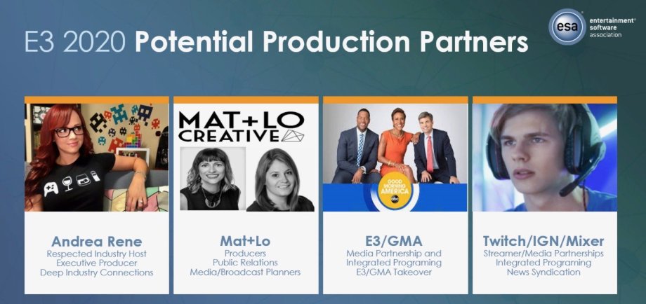网络广播节目“Virtual Economy - 虚拟经济”拿到了一张ESA提议的幻灯片,上面列出了许多潜在合作伙伴,包括主持人Andrea Rene和游戏媒体巨头IGN。