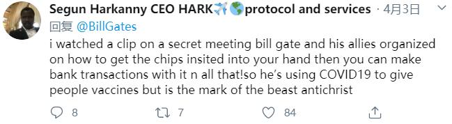 “我看过一段比尔·盖茨和合作者秘密会议的视频,会议的主题是如何将芯片植入手中,然后用它进行银行交易。所以想一想,他这种人想着用 COVID 19 病毒当疫苗注射进大家的身体,也就不奇怪了。他简直不是人。”