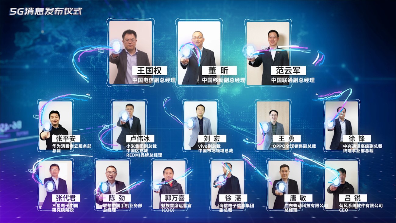 中国移动副总经理董昕、中国电信副总经理王国权、中国联通副总经理范云军,以及来自华为、小米、vivo、OPPO、中兴、三星、联想、魅族、海信、蜂动、菊风等11家企业的代表出席发布会,共同见证5G消息业务开启新篇章。