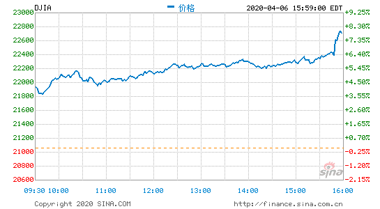 北京时间7日凌晨,美股周一收高,三大股指涨幅均超过7%,道指暴涨逾1600点。全球疫情蔓延速度似有放缓迹象,风险投资偏好受到提振。美国总统特朗普称美国疫情已开始趋稳,并表示仍考虑重启美国经济。