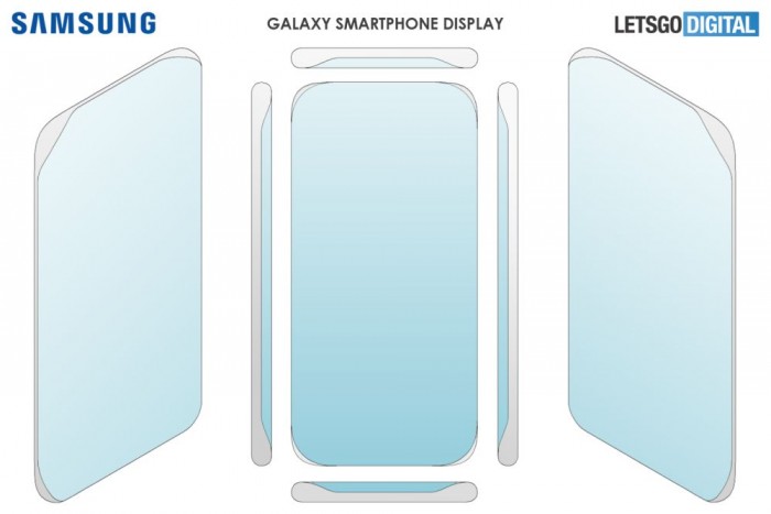目前弧形屏幕主要为两侧,不过在三星申请的最新专利中概述了一款四面均为弧形屏幕的智能手机。在四个角上依然保留了金属框架,来提高整体的坚固性。