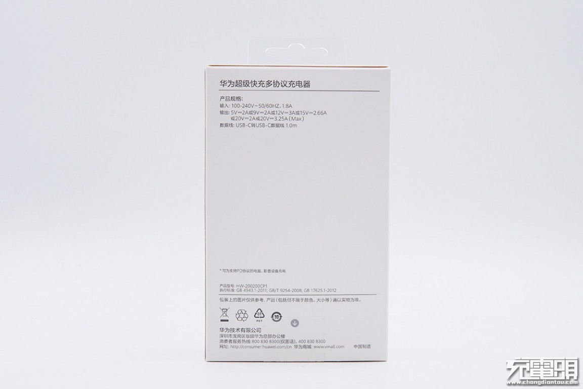 华为技术有限公司制造,已经通过了CCC认证,符合VI级能效认证。