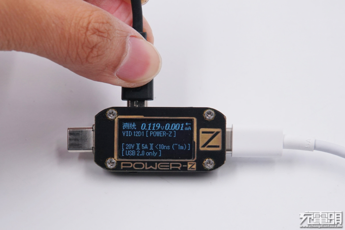 使用ChargerLAB POWER-Z KM001C检测E-Marker信息,这根线支持20V/5A 100W快充,USB 2.0标准,线长1米。