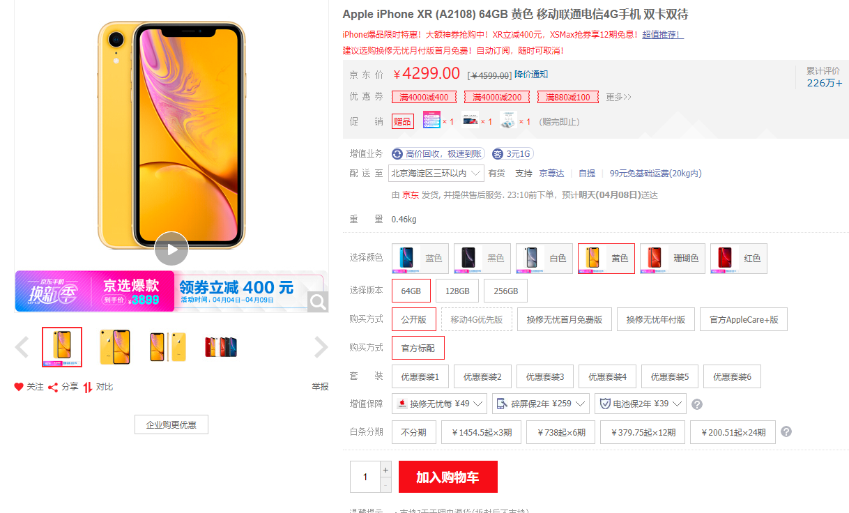 另外,iPhone XR 64GB部分配色到手仅3899元,历史新低。