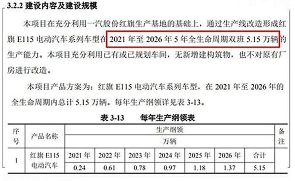 根据此前环保局的文件显示,该车型其实是红旗将在2020年开始投产的代号为E115的纯电动SUV,项目总投资17.5亿元,规划六年时间内总计生产5.15万辆,并预计于2021年上市。