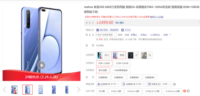 除此之外,我们还在京东查询了目前售价最便宜的几款5G手机,分别是Redmi K30(1999元,6GB+64GB)、vivo Z6(2198元、6GB+128GB)、Realme 真我X50(2439元、8GB+128GB),三款手机售价在2000元左右。它们使用的是高通骁龙765G处理器,作为一款中高端处理器,它的性能表现在日常生活使用是绝对能满足的。