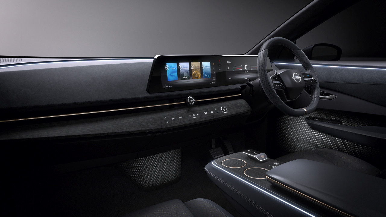 日产表示,这一布局体现了其全新的Timeless Japanese Futurism设计语言。不过,日产明确表示,选择横向设计并不是单纯为了外观而选择的。设计师表示,人的眼睛在驾驶时自然会左右观看。日产表示,如果将信息水平放置,人们可以吸收更多信息。