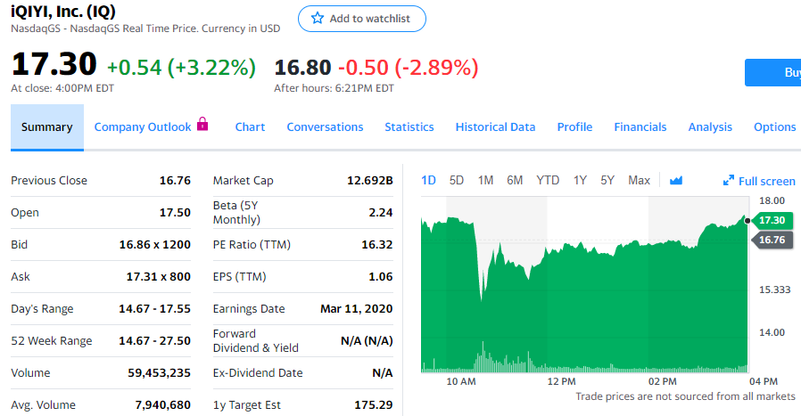 爱奇艺遭两大机构联手做空,股价涨3.22%