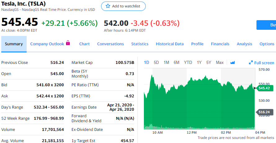 特斯拉计划最早本周在中国市场推出行程超过400英里的长程版Model 3。彭博社援引知情人士的话刊文称,长程版Model 3价格更高,可能会在数天内推出。长程版Model 3一次充电可以行驶约404英里,远高于当前型号的约280英里。当前型号Model 3起步价为4.58万美元。不计折扣,长程版Model 3起步价将略低于5万美元,具体价格尚未敲定。与当前型号相似,长程版Model 3也可以申请新能源汽车补贴,而且免收汽车购置税。特斯拉上个月表示,2月10日复工复产后,工厂产能大幅提升,每周产量达到3000辆。Jefferies分析师将特斯拉股票评级由“持有”上调至“买入”,他们认为特斯拉将获得中国和欧洲各国政府的有力支持,最近数天特斯拉股价出现上涨。Jefferies分析师菲利普·霍查伊斯(Philippe Houchois)预计2020年特斯拉销售将增长27%,高于华尔街分析师预期的平均值20%。星期二盘前交易中,特斯拉股价上涨4.51%至539.5美元。今天常规交易中,特斯拉股价上涨29.21美元,涨幅为5.66%,报收于545.45美元。