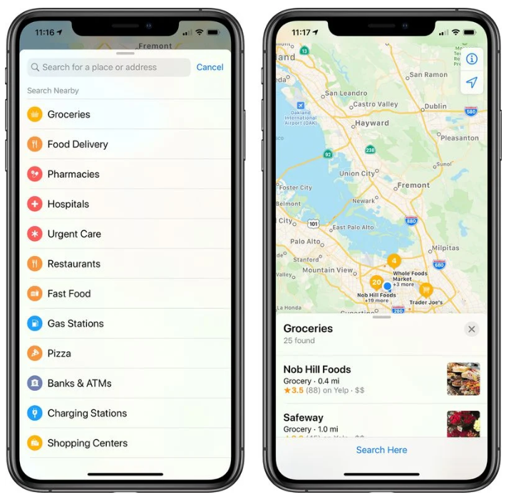 据外媒Macrumors报道,苹果公司已经更新了苹果地图应用中的搜索功能,将重点放在了人们现在关注最重要的类别上:超市、食品快递、药店、医院和紧急医疗。在搜索时,这些类别的选项会排在第一位,排在餐馆、快餐店、加油站、银行和其他类别之前。