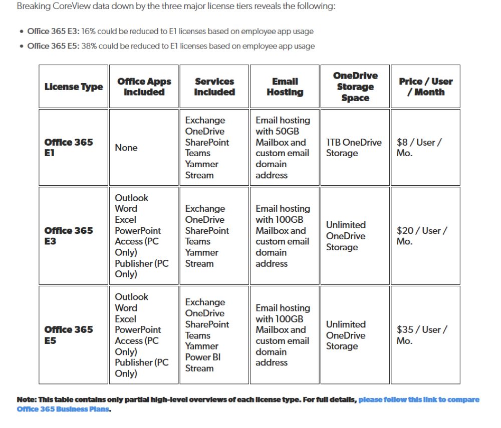 数据显示,大多数企业并没有对许可证管理给予足够的重视,这就会在资产负债表上为此付出代价。CoreView发现,如果企业通过消除或重新分配非活动许可证,发现并更好地管理非活动许可证,平均企业可以将其Office 365总成本降低14%。