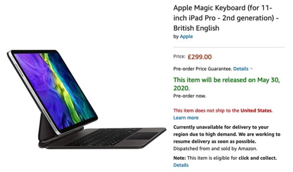 带触控板的妙控键盘目前已经在亚马逊英国网站现身,显示发货日期为5月30日。不过这极有可能是一个暂定的日期,因为零售商正在积累库存。目前苹果中国官网依然显示为“5月发售”,产品零售价为2399元,支持24期免息购买方式。