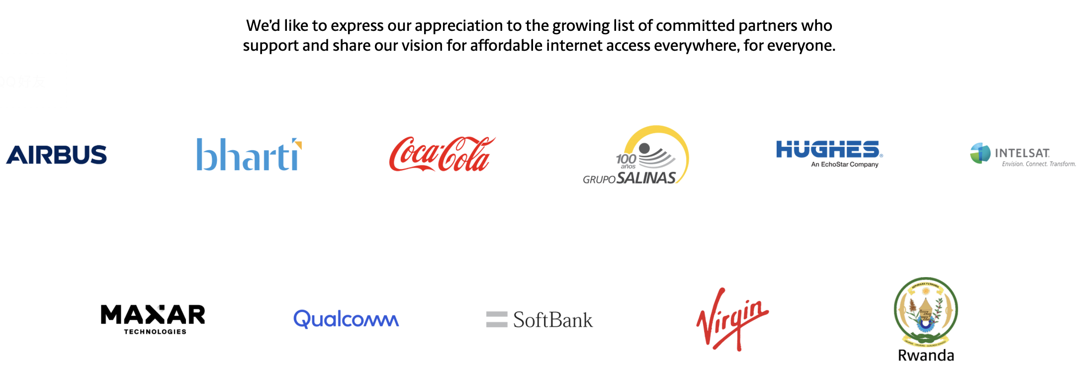 OneWeb 的愿景是“让每个人在任何地方都能使用廉价的互联网”,这背后离不开合作伙伴的支持和参与|OneWeb 官网截图