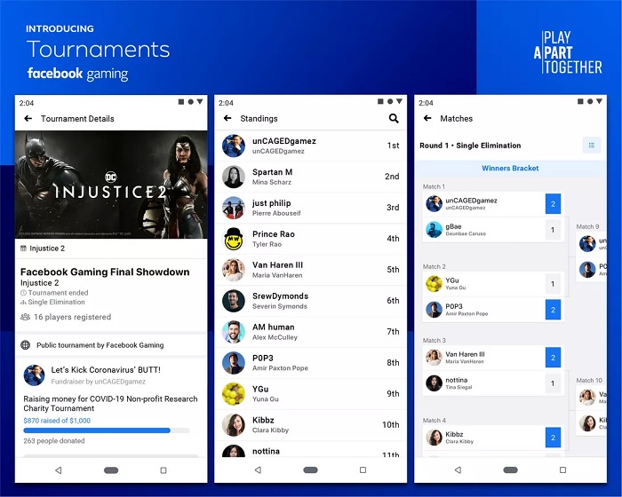 作为一项最初为电子经济而设计的功能,Facebook Gaming 现已向所有人开放了锦标赛,以鼓励网友们安心宅家、同时与好友们保持线上联系。作为新冠病毒流行期间的一项福利,其允许玩家与陌生人或好友创建自己的比赛,即使在家中也能够与他们保持联谊。