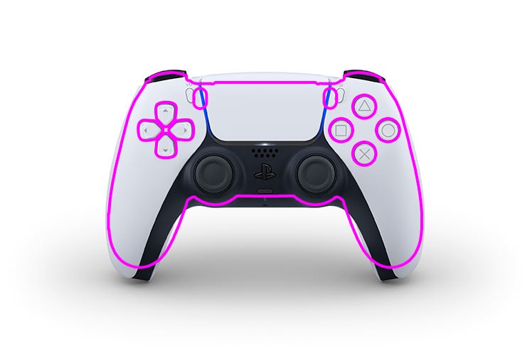 从图中可以看到,PS5手柄和PS4手柄相比较,摇杆、方向键、图形按键位置没有太大变化。但PS5手柄中间部分变宽了,上下多出一截,触摸板面积变大,左右握把部分变得细长了。