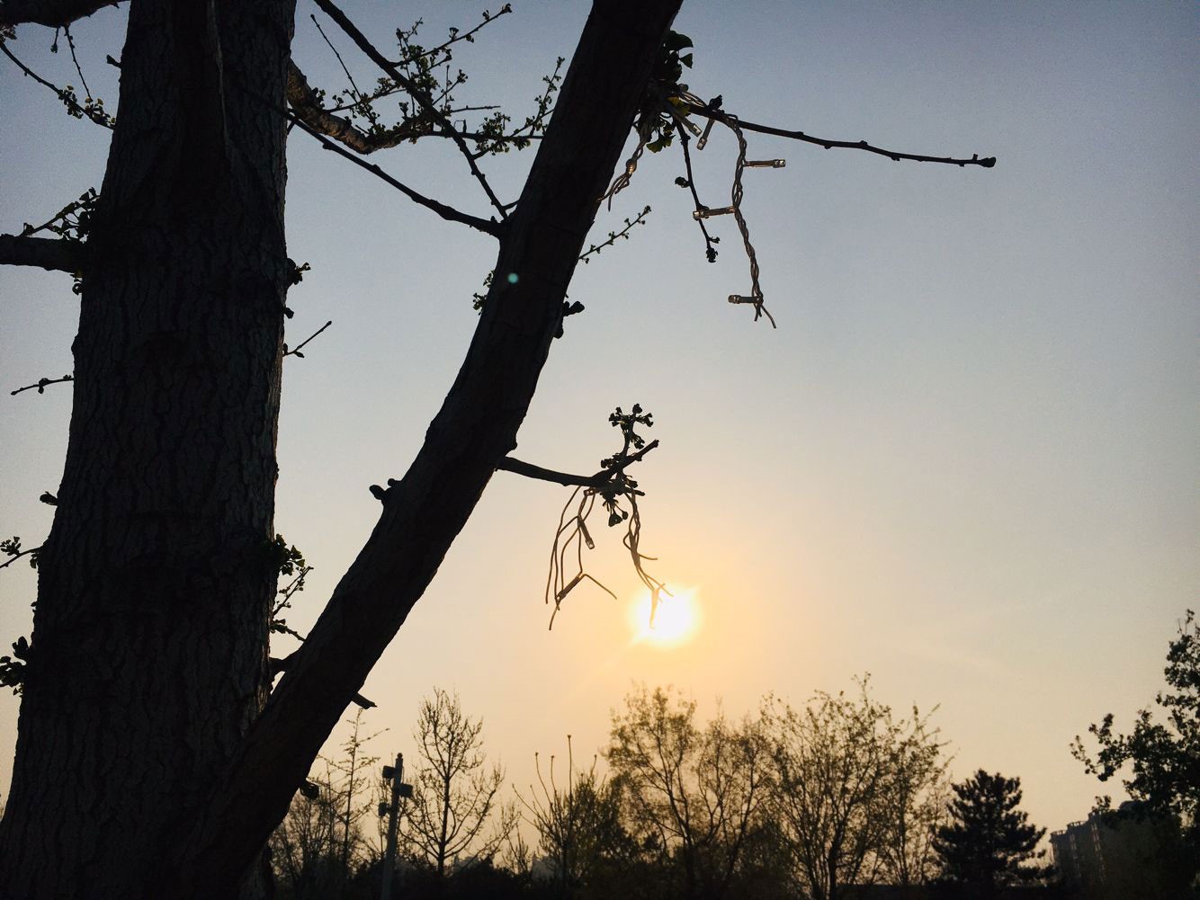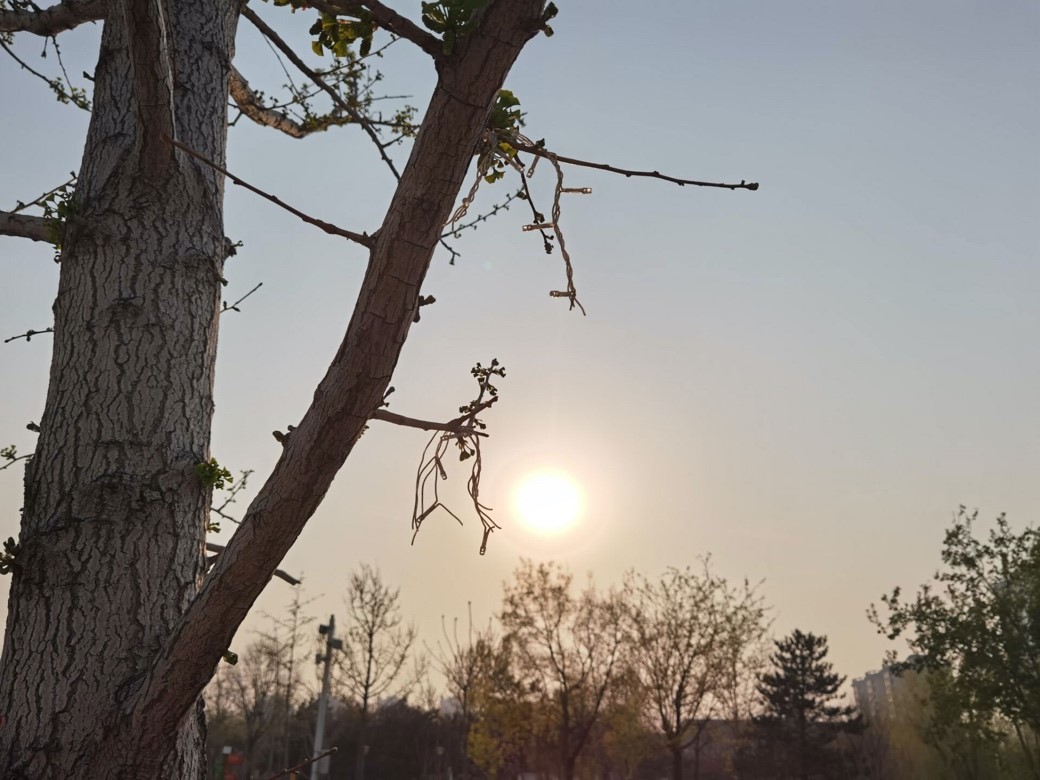 逆光拍摄样张,华为 P40 Pro可以看到不论是逆光拍摄的树干还是背后的夕阳光源,都能清晰的展示,而AppleiPhone X拍摄的逆光样张中可以看到树干部分很暗。