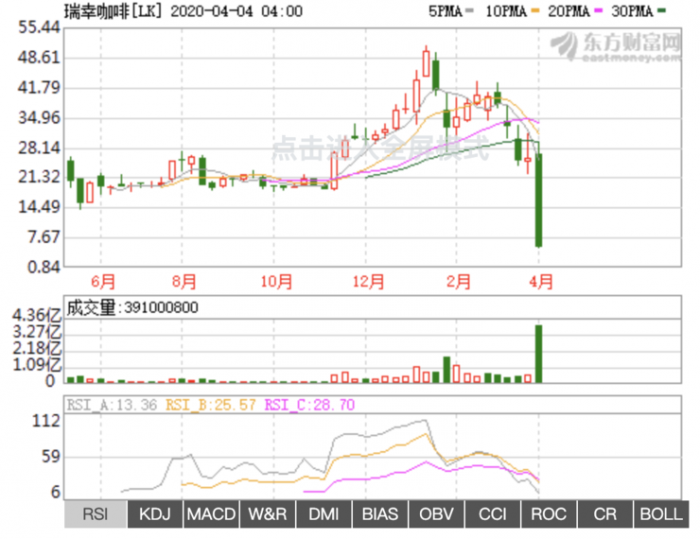 4月对瑞幸咖啡来说是困难的一个月。由于内部调查发现2019年后三个季度营收存在很大水分,4月2日瑞幸咖啡股价遭遇暴跌。目前,瑞幸咖啡股价与4月1日相比跌幅超过80%。