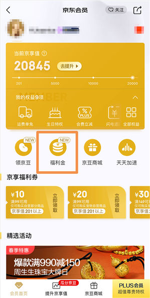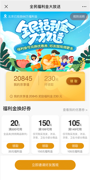 能领取到的福利金数量,和你的京享值相匹配,也就是京享值越高,福利金越多。