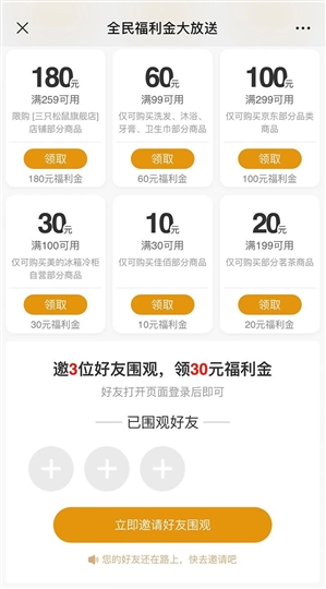 另外,点击“+”立即邀请好友围观,所得福利金还会翻倍,如果有3位好友打开分享页,就能助力成功,可再领30元福利金。