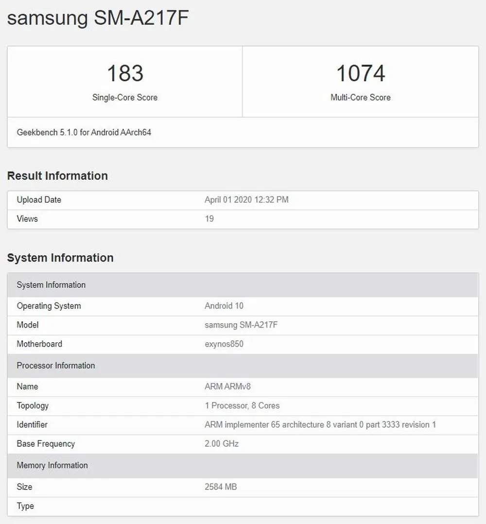 尽管这是一款入门级设备,但是Galaxy A21相比于其前代产品Galaxy A20,预计会有很大的升级。根据上个月Geekbench的一份上市信息,这款智能手机将采用联发科Helio P35 SoC,搭配3GB RAM。