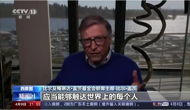 在今晚(4月9日)的央视《新闻1+1》节目中,主持人白岩松专访美国盖茨基金会联席主席比尔·盖茨。在采访中,白岩松提问:现在世界上各国之间也开始出现“攻击”、不合作、甚至是歧视这样的一种局面,这一点是否让您担心,您的建议是什么?
