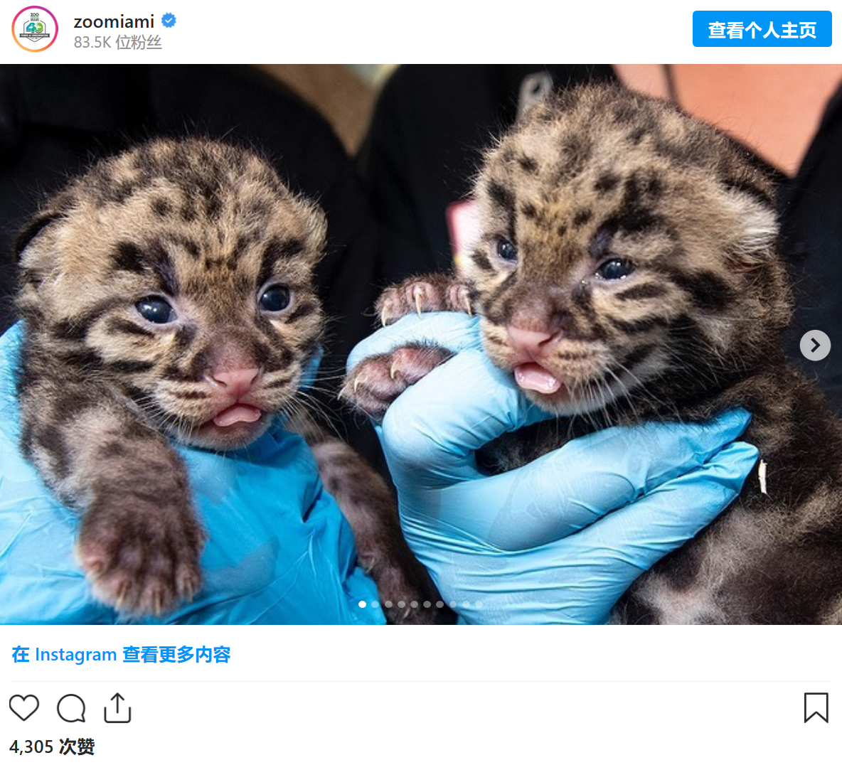 昨日,迈阿密动物园也决定在网上分享他们那边云豹幼崽的一些近照。