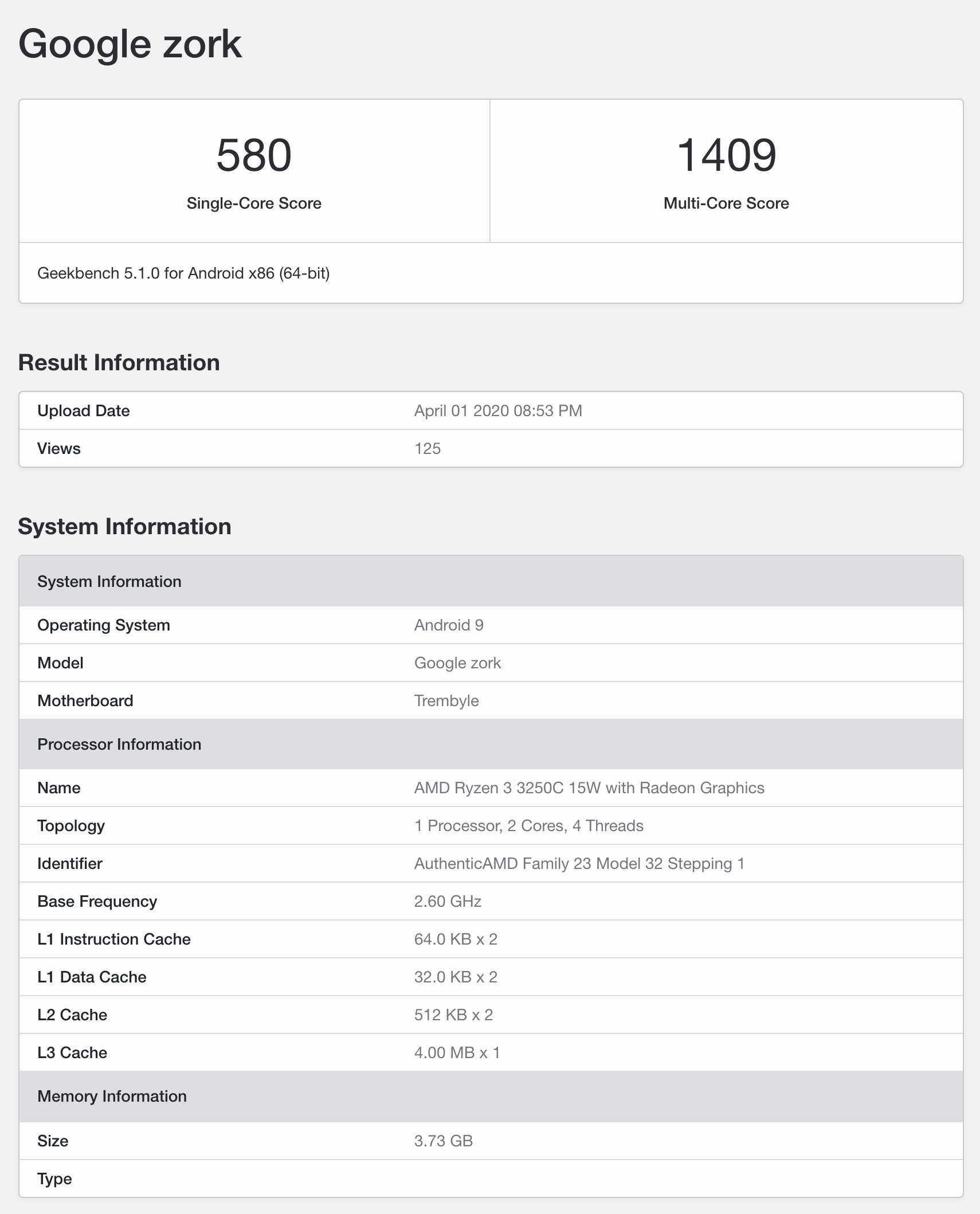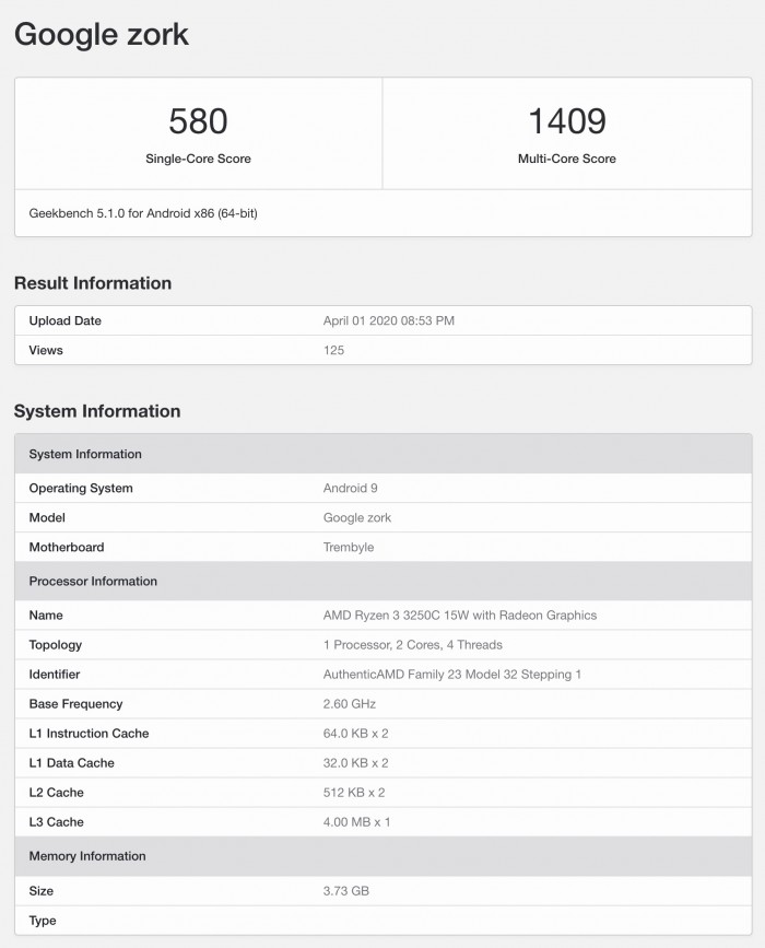 有猜测这款处理器是AMD专门面向谷歌Chromebook定制的,所以运行Android 9也能解释通了,而且4GB内存也确实是大多数Chromebook的标配。