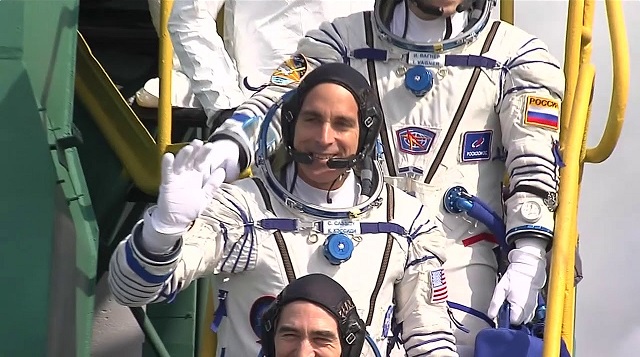 他们将接替当前驻留国际空间站的三名远征队员,按照计划,老队员会在一周内重返地球。