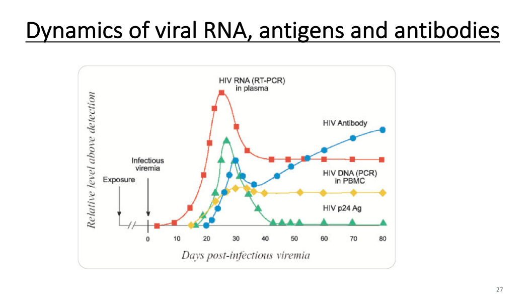 (图)这个是说明核酸抗原抗体的变化,我们拿HIV为例,它的RNA是红色的峰,抗原是绿色的峰,抗体是蓝色的峰。