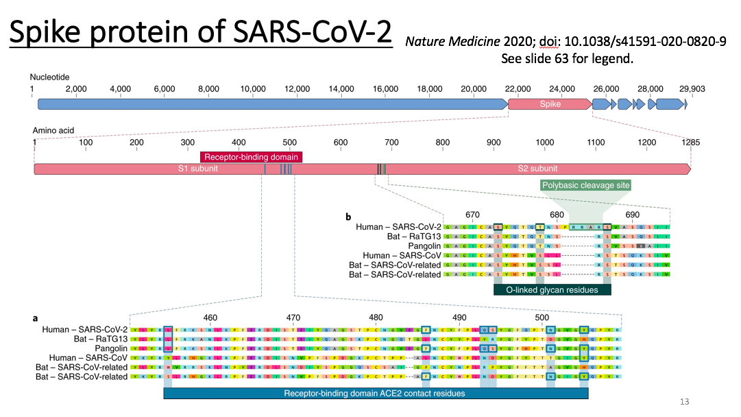 这里讲到纤突蛋白,中间会被宿主蛋白酶切割一分为二,分别是S1和S2,这跟HIV是相似的,很多的病毒表面蛋白都有这个特点。