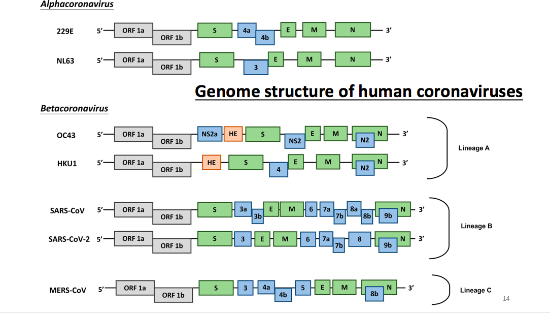 (图)这是它们基因组的结构,其中包括α-冠状病毒和β-冠状病毒。
