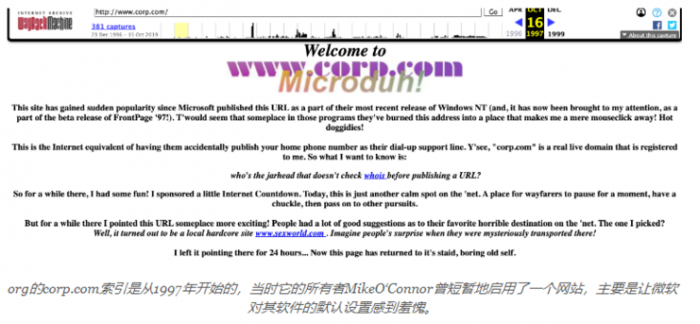 早在 1997 年,Mike O’Connor 就用这个域名开了个世界级的玩笑。