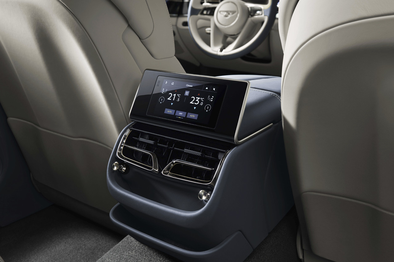 对于一些宾利车主来说,后座的舒适性和便利性远比前座乘客所能享受到的东西更重要。因此,宾利飞驰配备了全新的触摸屏遥控器,将豪华设备的操控权交到了后座乘客手中。宾利表示,全新的Flying Spur多功能触摸屏遥控器可以让后座乘客对车内丰富的豪华功能进行前所未有的控制。触摸屏遥控器采用抛光金属材质,并以钻石滚花点缀其中。