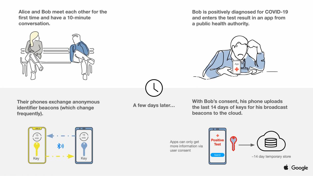 首先,当使用公共卫生机构的应用程序时,苹果和谷歌将发布特殊的API,允许iOS和Android设备之间的互操作性。这类应用将分别通过App Store和Google Play商店提供。这将意味着,无论人们使用的是什么平台,软件都可以更好地互通数据。