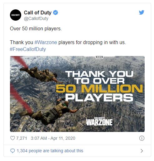 Infinity Ward刚刚宣布《使命召唤:战区》在全球拥有超过5000万玩家。这款游戏推出于一个月前,在头十天就吸引了3000万玩家。之后游戏又用了20多天的时间来增加粉丝基础,并达到5000万的目标。
