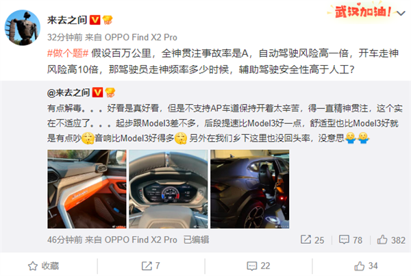 此外,@来去之间 还问道:“假设百万公里,全神贯注事故率是A,自动驾驶风险高一倍,开车走神风险高10倍,那驾驶员走神频率多少时候,辅助驾驶安全性高于人工?”