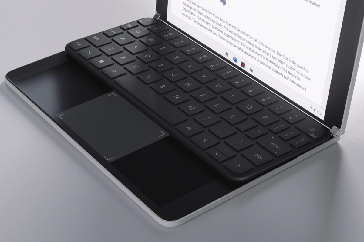 Surface Neo是一款生产力设备,为了帮助用户最大限度的发挥出生产力,微软将为Surface Neo发布一个特殊设计的键盘盖,这个键盘盖可以通过磁力连接,随后就可以将下方的触摸屏变成一个物理键盘。然后,键盘上方或下方的区域可以作为触控板区域或其他用途。