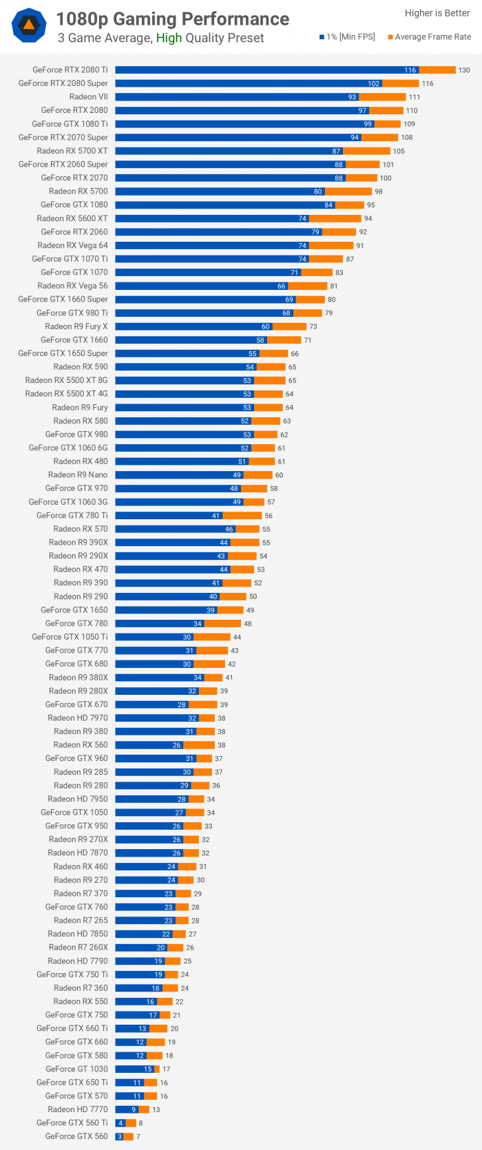 TechSpot网站日前针对市面上的二手显卡做了一次全面的测试,总计有43款显卡,并加入了最新的RTX 2080 Ti显卡作为对比。