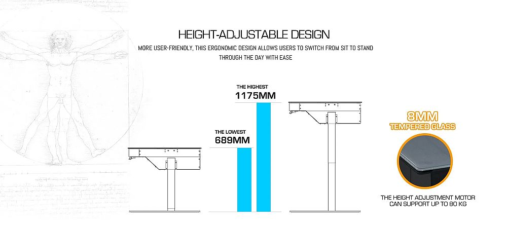 这些办公桌在CES 2019展会上首次亮相时,吸引了大家的目光,那就是8毫米的钢化玻璃顶盖,只需按下一个按钮,就能瞬间从透明变为不透明。他们实现这一功能的方法是使用电致变色玻璃--通常被称为 "智能玻璃"--当你在其上施加电压时,这种玻璃具有变不透明的能力。