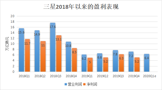初步财报披露三星电子2020Q1的6.4万亿韩元营业利润,事实上并没有比2019Q1的6.2万亿韩元高出太多,远远没能达到市场预期。