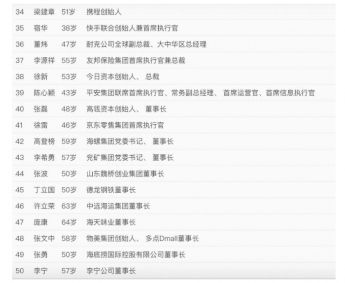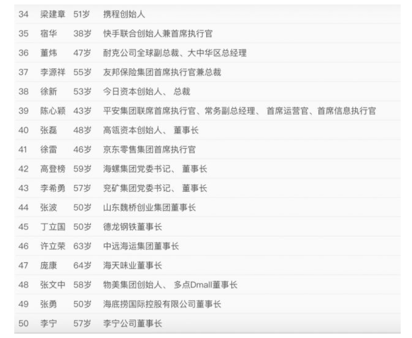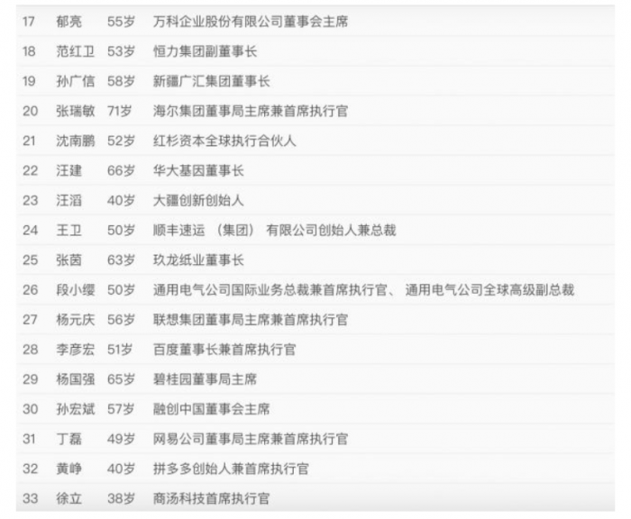 除此之外,榜单前十名还包括腾讯董事会主席兼CEO马化腾、字节跳动创始人兼CEO张一鸣、鸿海集团创始人郭台铭、福耀玻璃董事长曹德旺、吉利控股董事长李书福、小米创始人雷军、格力电器董事长董明珠。